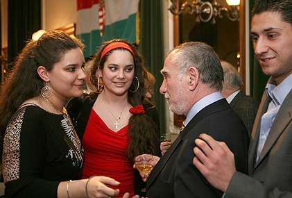 Az est végén a Roma Szakkollégium diákjai köszönték meg tanáruknak azt, amit Rostás-Farkas György a cigány fiatalokért tesz, s mint mondták, mindannyiuk számára példamutató az a kettős kötődés és identitás, amelyben Rostás-Farkas György él, s amellyel hidat épít cigányok és nem cigányok között.